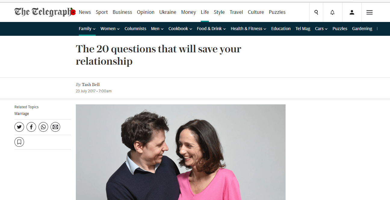 And it’s based on science: 20 years ago, Dr Arthur Aron, a US psychologist, tried an experiment to make two strangers fall in love by answering a series of questions together. Result: six months later, Dr Aron’s research team got invited to their wedding! The conclusion seemed clear: intimacy can be accelerated if we cut to the (conversational) chase. But can it be thus re-captured? Andrew believes so. He’s adapted Dr Aron’s questions – and added many of his own. So could it work for me? A married mother of three, I mostly get my “buzz” from sticking a knife in the toaster. If Andrew can electrify my marriage, I’m in!